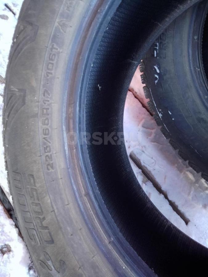 R 17/225/65. Зимняя хорошая. Липучка+ Шипы, более половины на месте. Протектор большой. Цена 10 тыс. За весь полный комплект.