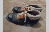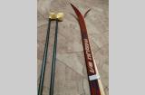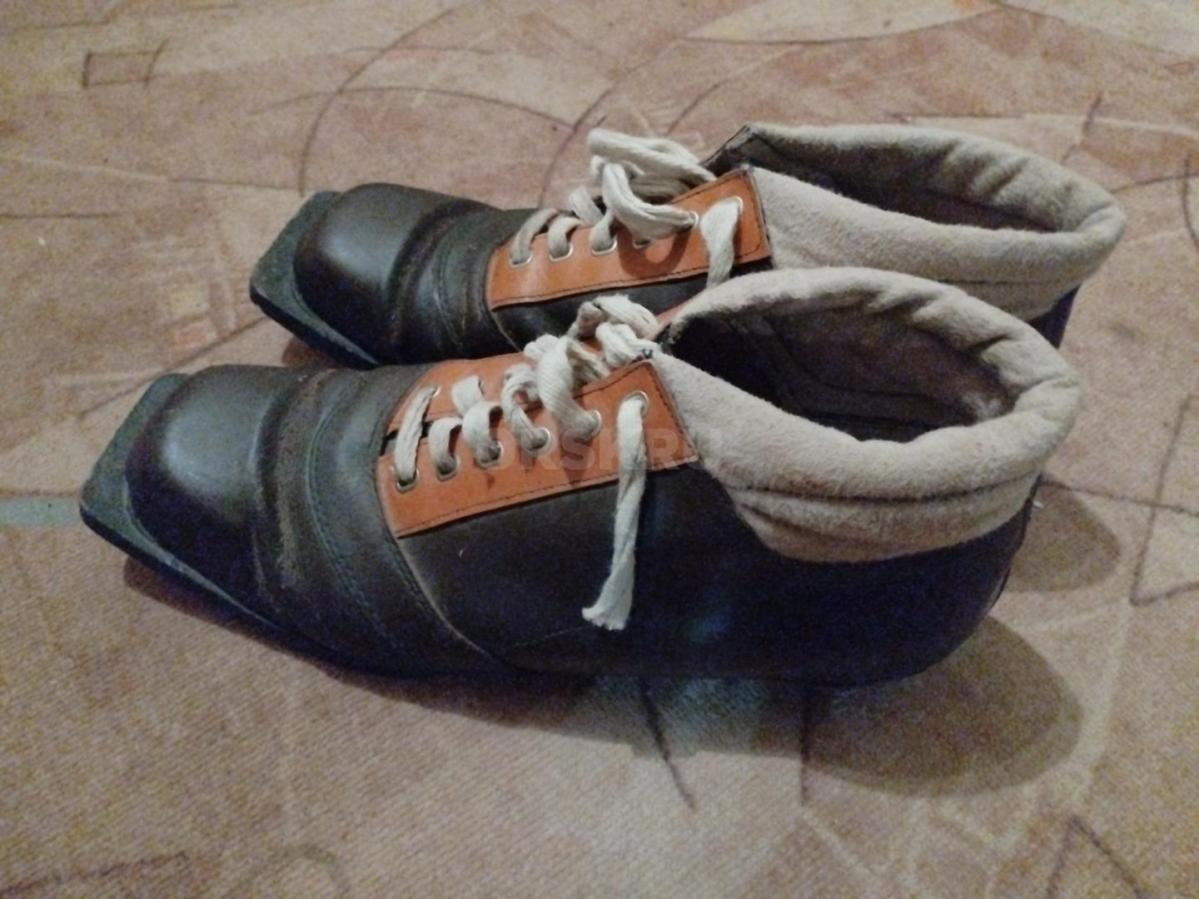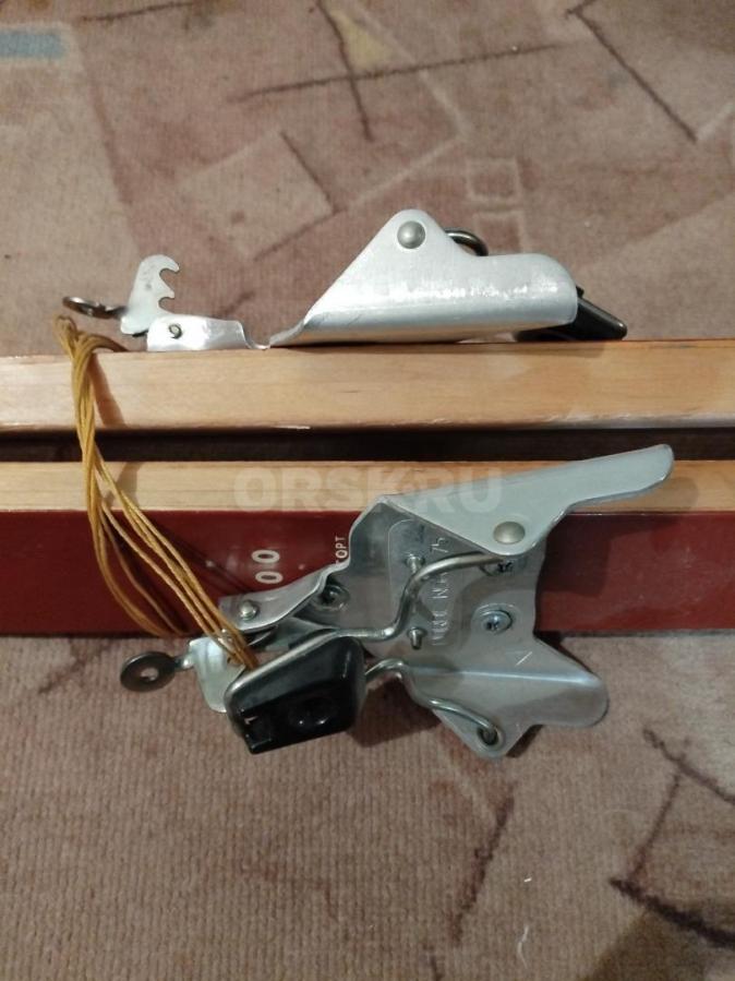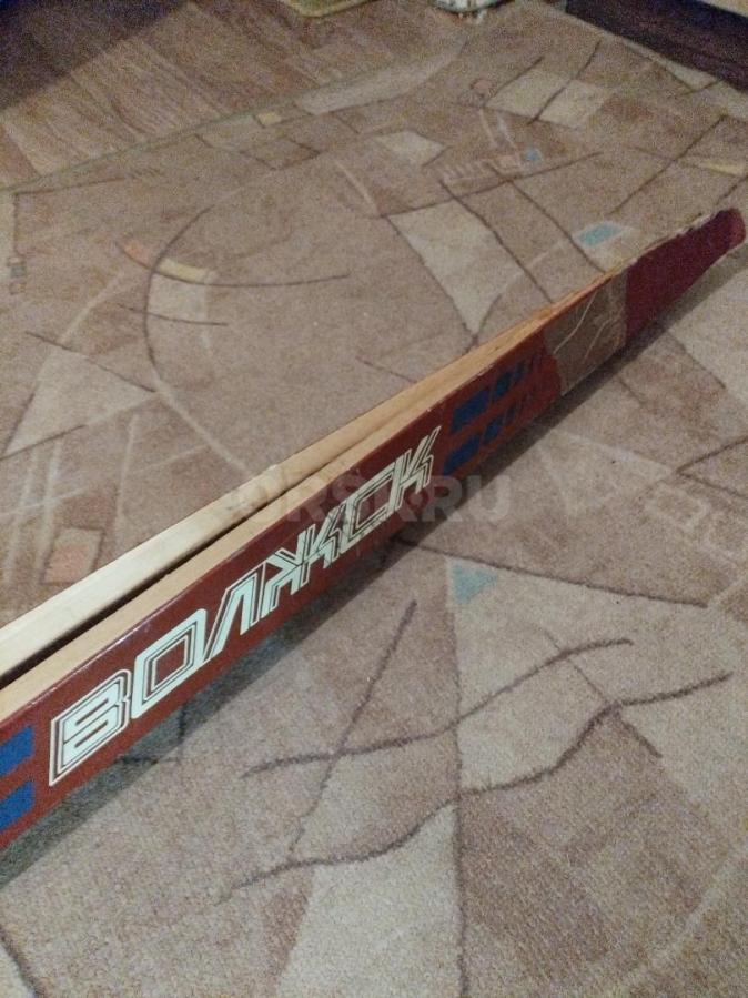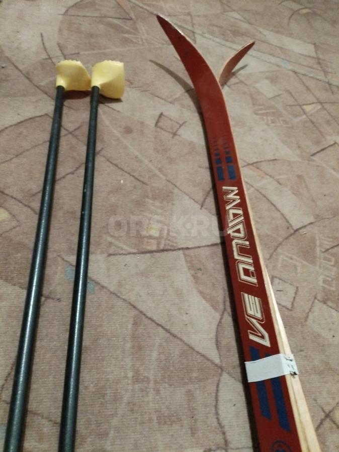 Продам лыжи деревянные с ботинками и палками, б/у. Размер 42.