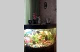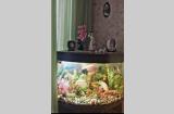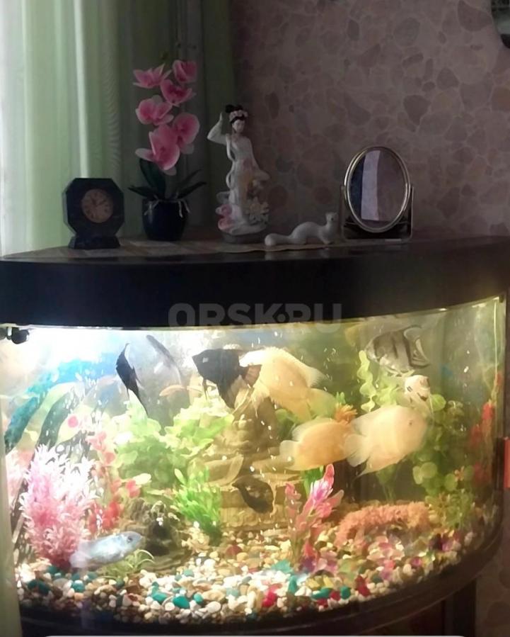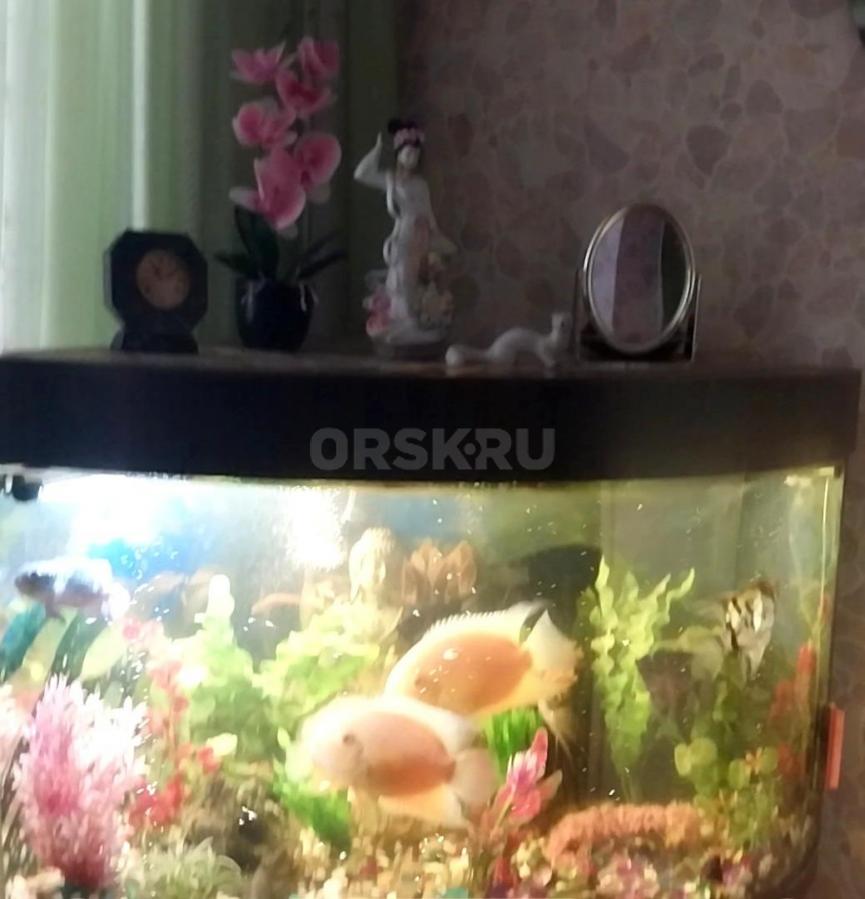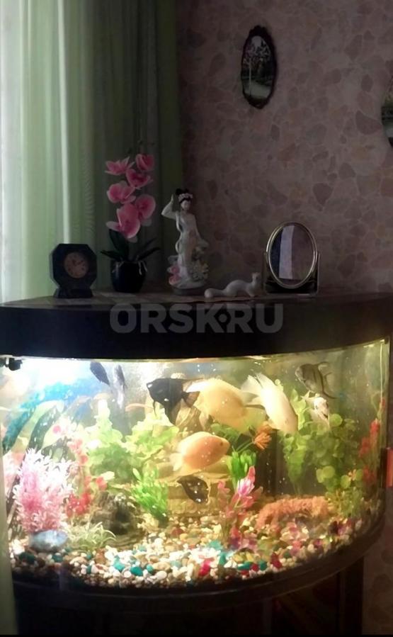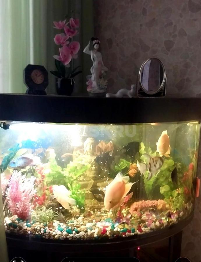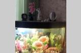 Угловой аквариум с тумбочкой, крупные рыбки Северум, Скалярии, Боции - 11 штук, погружные лампы, фильтр для очистки воды, компрессор воздуха и др.