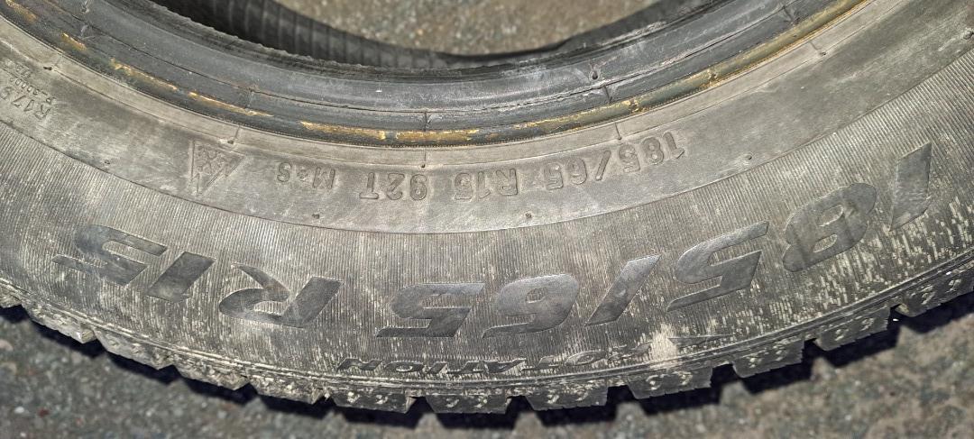 Комплект шипованных шин 185 65 р 15. Пирелли. Шипов мало.