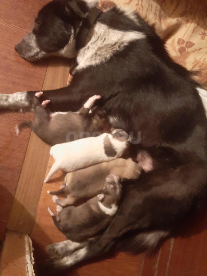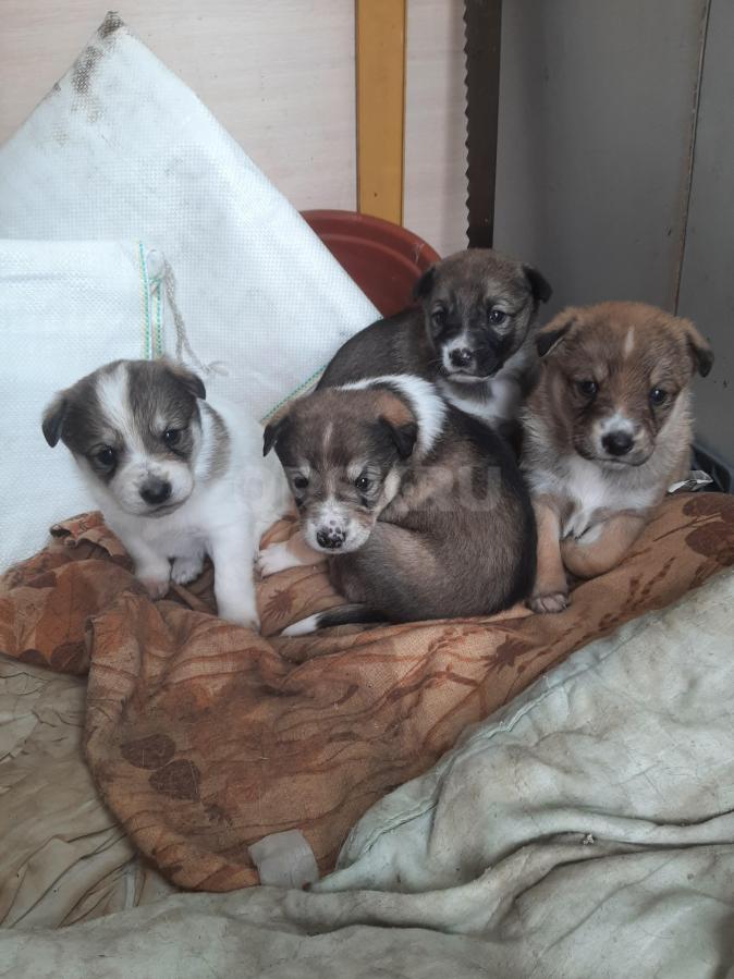 отдам щенят 1 месяц, самая темненькая девочка, остальные мальчики. Мать на фото отец неизвестен