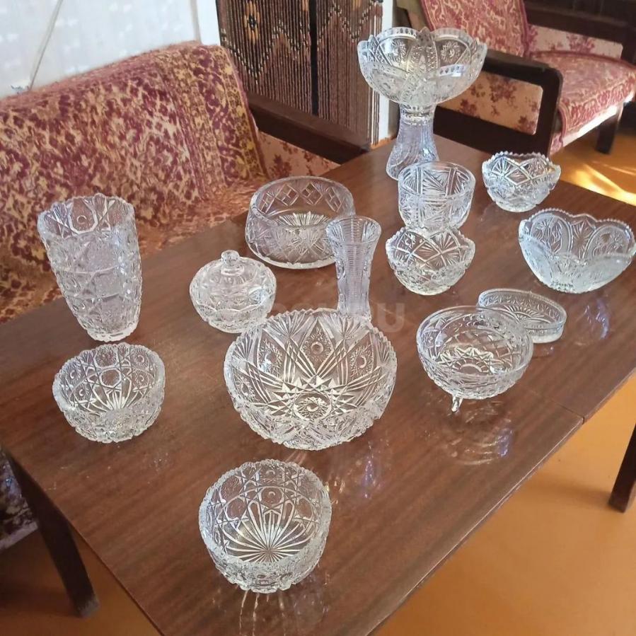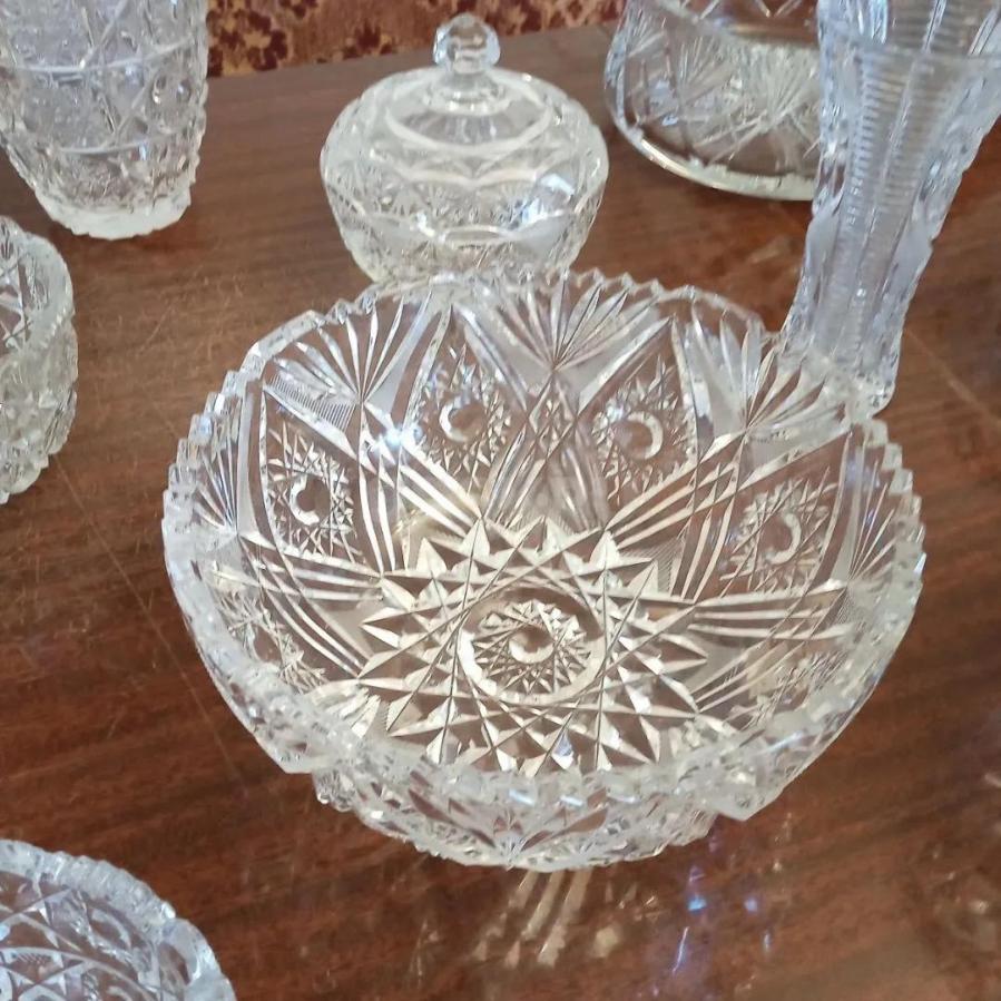Набор хрустальных салатниц и ваз.