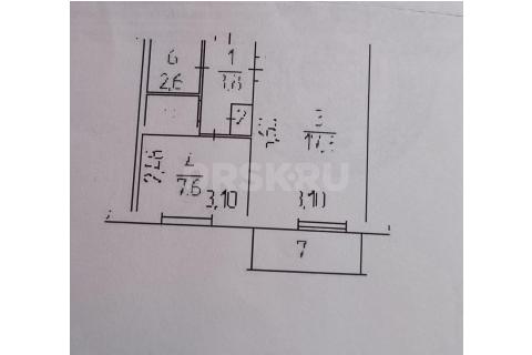 2-к квартира, 5/5 эт., 43м2