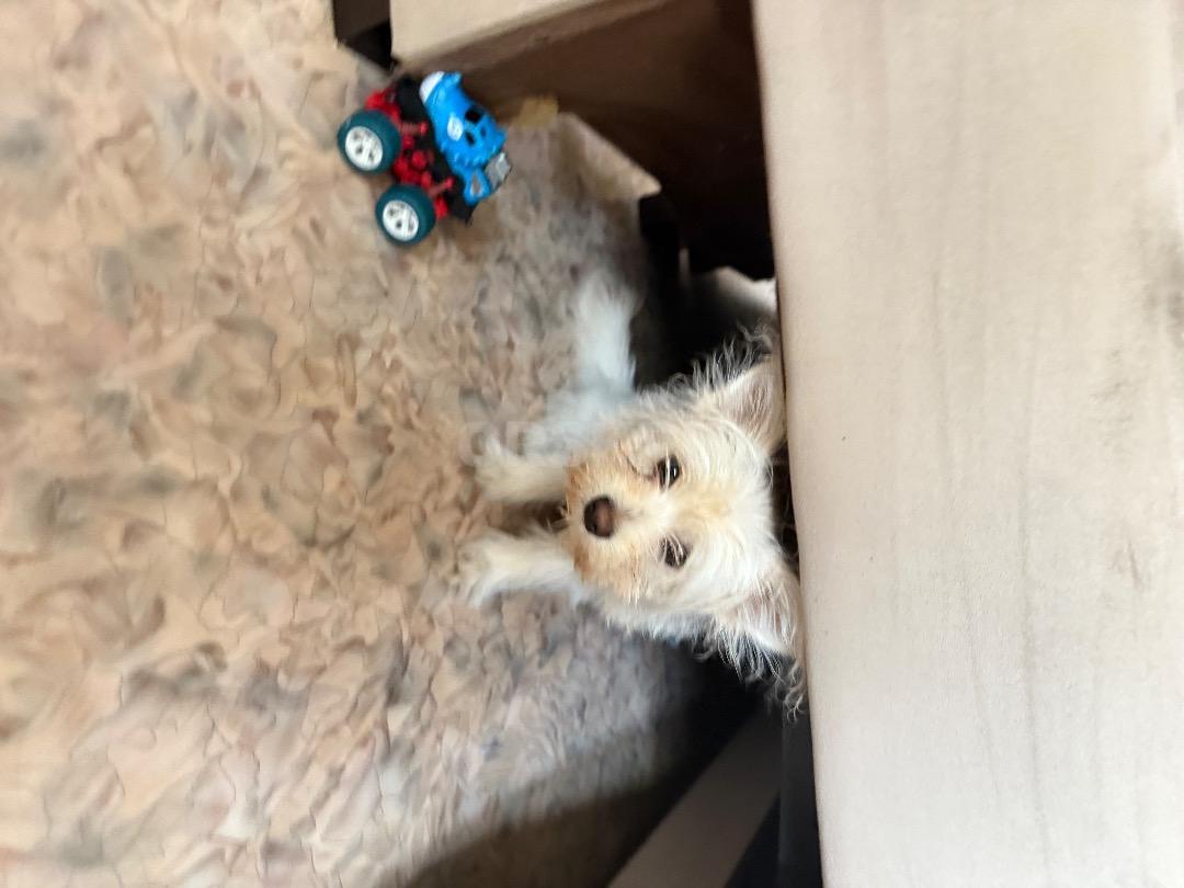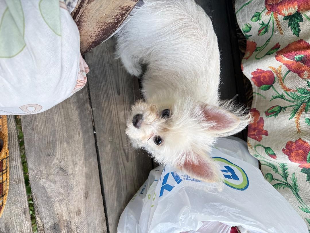 Продам щенка помесь мальтийской болонки +йоркширский терьер, окрас белый , 6 мес, пеленку знает , кушает натуральную еду, очень умная добрая