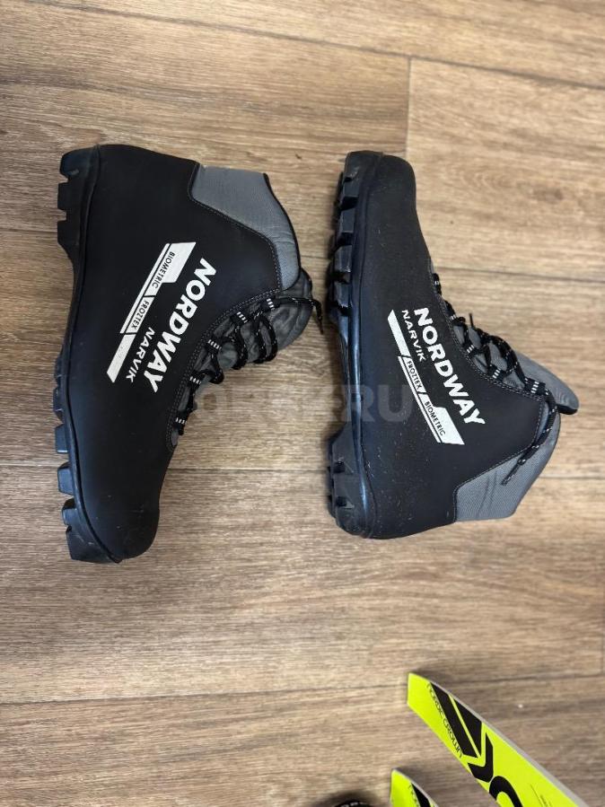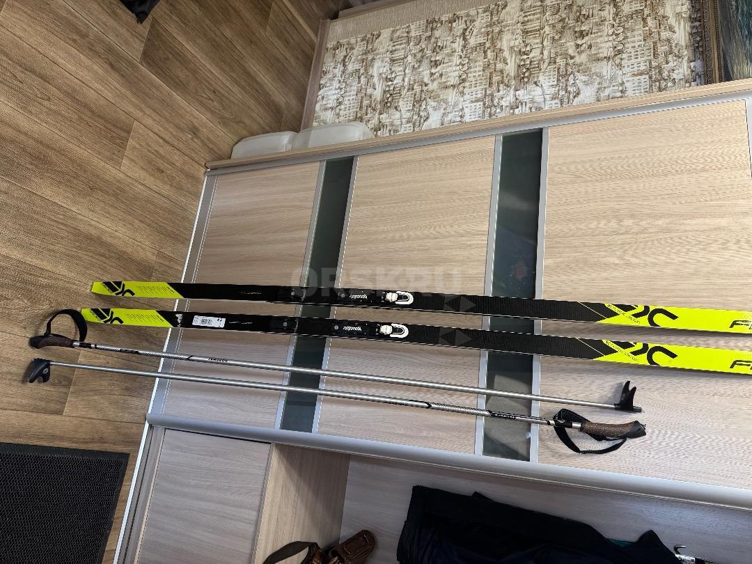 Лыжи беговые, палки с ботинками, чехол. Состояние новых.