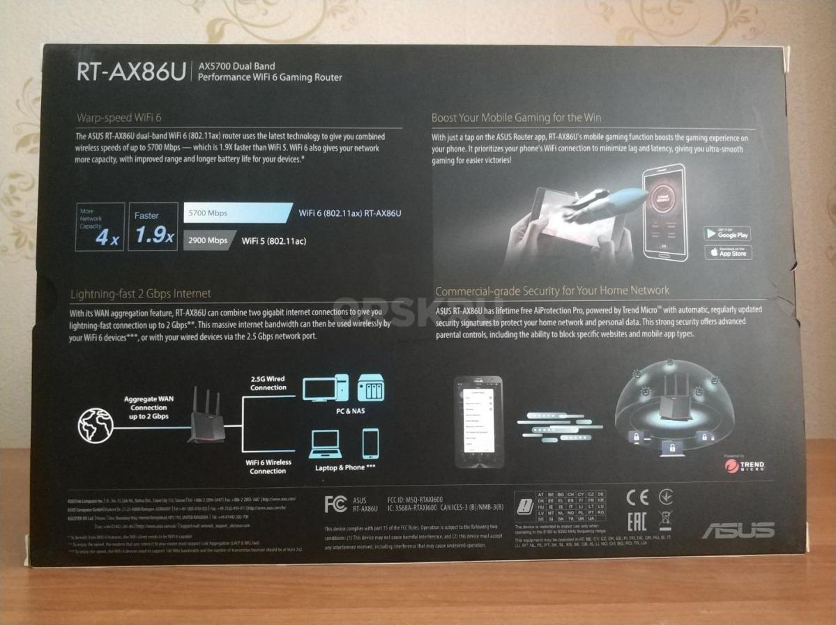 Роутер ASUS RT-AX86U в идеальном состоянии. WiFi 6 (802.11ax), AX5700, 2.4 ГГц+5 ГГц, технология AiMesh, скорость соединения до 5700 Мбит/с. Полный комплект пoставки: упаковка, документация, блок и кабель питания, RJ-45 кабель, антенны Microtik. Роутер быcтрый и надежный.